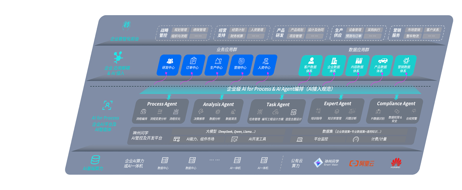 端到端的一站式AI工作空间深度融合了从企业战略规划到日常经营的全流程业务板块,,,定向解决车企内部领域多、、部门多、、、链条长、、、场景碎片化等难题,,,,支持车企快速构建以AI为核心的生产力写作体系,,,实现任务执行与AI能力的无缝集成与交互